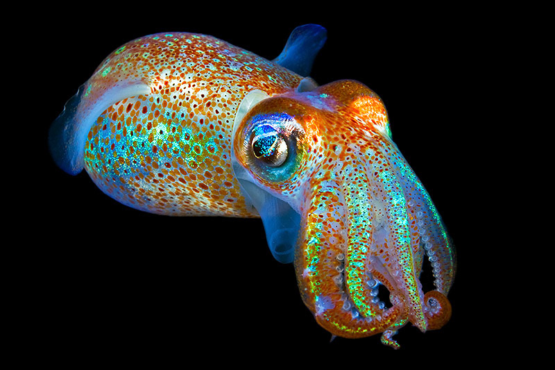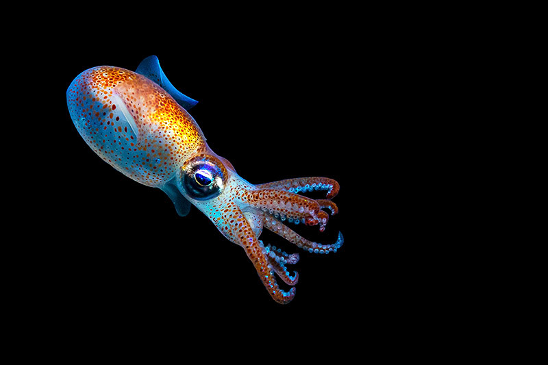 Fish, sharks and squids